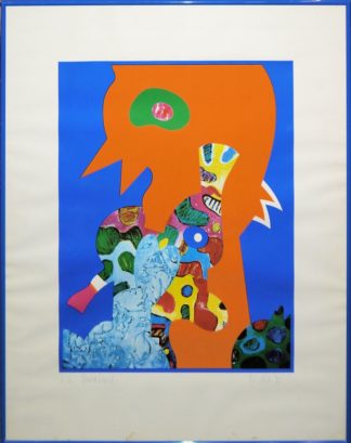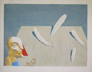 0014-Horst Antes, Tisch mit 4 Federn, signierte Farblithographie von 1976