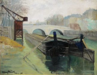 0013-Fernand Andrey-Prévost, Schiffsanleger auf der Seine in Paris, Ölgemälde von 1938