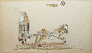 0018-Bele Bachem, Kutsche, Aquarell, gerahmt