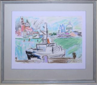 0224-Sammlungsnachlass: Rudolf Kortokraks, Venedig, Pastell von 1990 und Dächer einer Stadt sowie ...