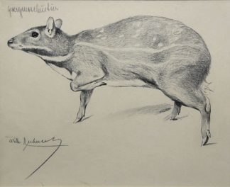 0229-Wilhelm Kuhnert, Zwergmoschustier, signierte Bleistiftzeichnung, gerahmt