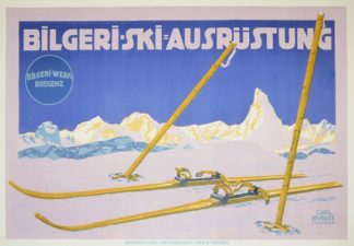 0232-Carl Kunst, “Bilgeri-Ski=Ausrüstung”, Farblithographie, Werbeplakat um 1910
