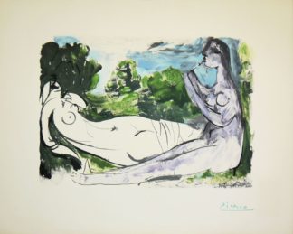 0328-Pablo Picasso, nach, “Femme nue et joueuse de flûte”, Pochoir-Lithographie von ...