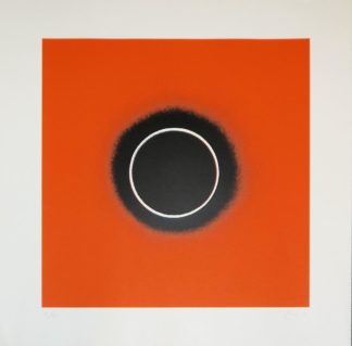 0332-Otto Piene, Schwarzweißer Lichtkreis auf Orangerot, sign. Farbsiebdruck von 1970