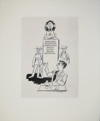 0335-E.O. Plauen, “Eden auf Werbereise”, politische Karikatur, signierte Tuschezeichnung