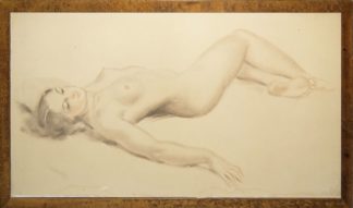 0336-Jean Marcel Poussard, Akt einer jungen Frau, Farbstiftzeichnung um 1930, gerahmt & ...