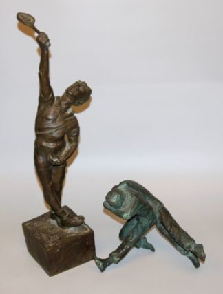 0342-Waltraud Suckow, Tennisspieler & Zweikampf, zwei Bronzeplastiken