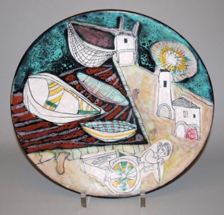 0029-Bruno Baratti, Mediterrane Szenerie, große bemalte Wandplatte der 1950er Jahre