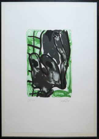 0034-Georg Baselitz, Ohne Titel, signierte Farblithographie von 1994, galeriegerahmt