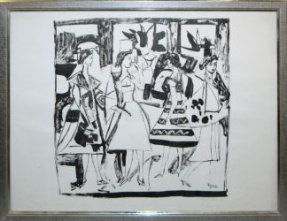 0036-Walter Becker, Damen, signierte Lithographie von 1952, gerahmt