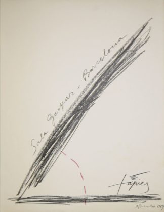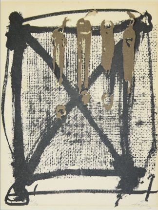 0401-Antoni Tapies, Quatre traces noires, signierte Farblithographie von 1963, gerahmtLimit: € 20 |20,00 €