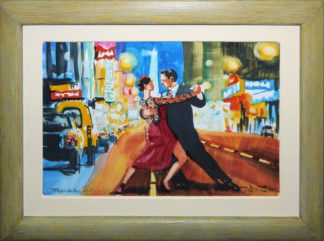 0450-Luis Zendza, “Tango en la calle Corrientes”, Aquarell im Galerierahmen