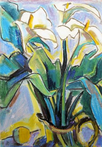 0452-Richard Ziegler, “Kalla im Glaskrug”, Pastell und Porträt, Lithographie, beide gerahmt