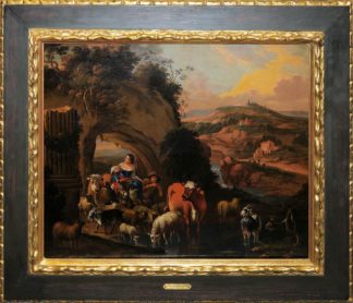 0444-Nicolaes Berchem unsign. / zugeschr., Pastorale Ideal- Landschaft mit junger Hirtin und ihren ...