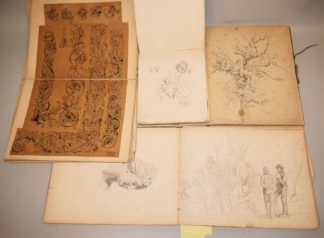 0445-Biedermeier-Maler, drei Skizzenbücher des 19. Jhs. und Modellmappe des Architekten Karl ...