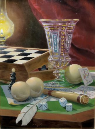 0447-Gyula Boros, Altmeisterliches Stillleben mit div. Gegenständen auf einem Tisch, Ölgemälde ...