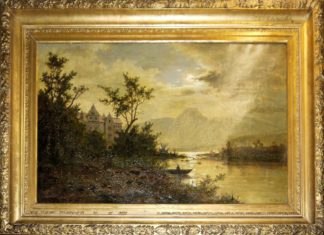 0453-Fritz Chwala, Romantische Seenlandschaft bei Vollmond mit einem Schloss, größeres ...