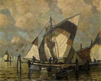 0456-Ludwig Dill, Fischerboote in Chioggia, großes Ölgemälde, im Stuckrahmen