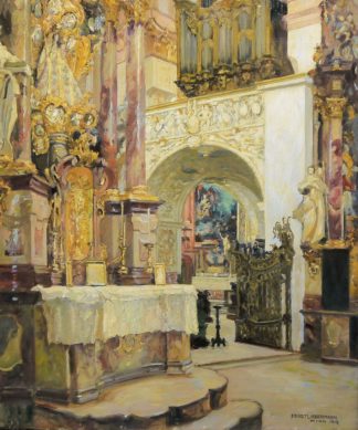0486-Ernst Liebermann, “In der St. Lorenzkirche in Kempten”, Ölgemälde, München 1918, gerahmt