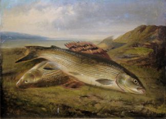 0502-Henry Leonidas Rolfe, 2 Äschen (Lachsfische) an Land, Ölgemälde gerahmt