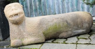0504-Skulptur eines liegenden Löwen, Sandstein, romanisch, 12. Jh., wohl Italien