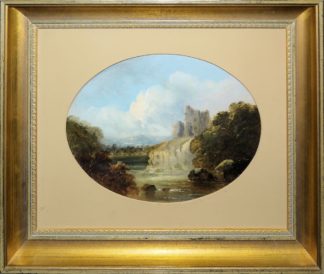 0506-Romantiker/Frühimpressionist um 1850, antike Ruine an einem Gewässer, qualitätvolles ...