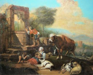 0507-Philipp Peter Roos oder Jakob Roos, unsign./ zugeschr., Tiere und Menschen an einem Brunnen, ...