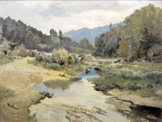 0510-Eduard II Schleich, Flusslandschaft, impressionistisches Ölgemälde, München 1882, original gerahmt