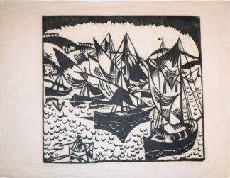 0516-Richard Seewald, Segelbarken (Elba), signierter Holzschnitt von 1922