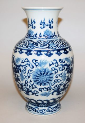0538-Blauweiß-Porzellanvase mit rankendem Lotus, wohl Qianlong-Zeit, China 18. Jh.