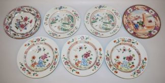 0554-Sieben Speiseteller, z.T. restauriert, Export-Porzellan der Qianlong-Zeit, China 18. Jh.