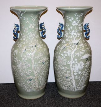 0559-Zwei Seladon-Bodenvasen mit Reliefdekor (eine Vase restauriert), späte Qing/Republik-Zeit, China um 1900