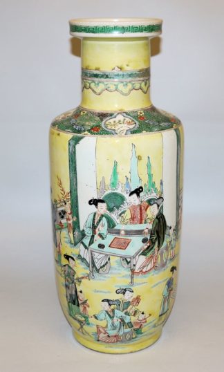 0563-Große Rouleauvase mit Familienszenen in famille jaune, wohl Republik-Zeit, China 20. Jh.