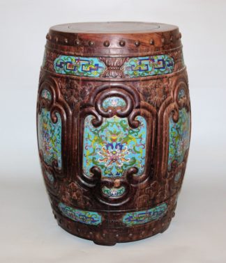 0571-Chinesischer Trommelhocker mit Cloisonné-Einlagen