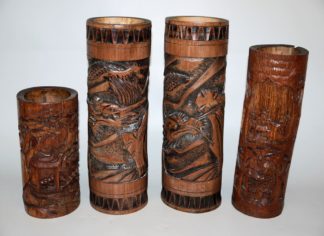 0577-Vier Pinselbecher aus Bambus, China 20. Jh.