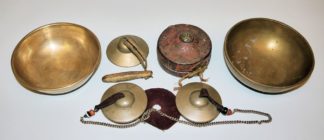 0653-Zwei “ting sha”, tibetische Zimbeln und zwei Klangschalen, 19. Jh.