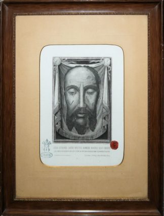 0733-“Schweißtuch der Veronika” im Petersdom, gerahmter Kupferstich auf Leinen um 1920 ...