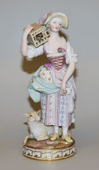0735-Schäferin mit Vogelkäfig, Lamm und Liebesbrief, Kgl. Meißen, 1850-1924