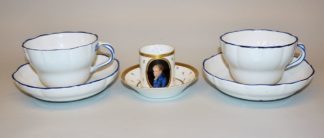 0737-Biedermeier-Bildnis-Tasse & Paar Porzellan-Kakaotassen, Kgl. Meißen, 1840-60
