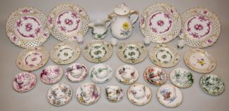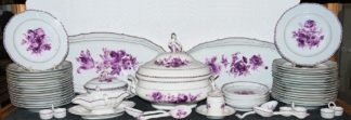 0742-Umfangreiches Porzellan-Speiseservice mit Purpur-Blumen für 12-32 Personen, Kgl. Meißen ab ...