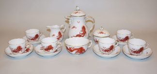 0752-Porzellan-Mokkaservice Roter Drache für 6 Personen & Teetasse, Meißen, 1. Wahl