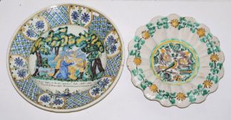 0764-Porzellanplatte Meißen, 1. Wahl & Majolika-Bodenvase des Jugendstils um 1900/10