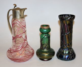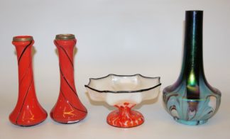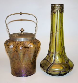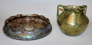 0777-Henkelvase und Glasschale des Jugendstils, wohl Loetz bzw. Kralik um 1900