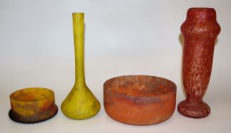 0774-Zwei Glasschalen und zwei Vasen des Jugendstils, Muller Frères, Legras u.a. um 1920