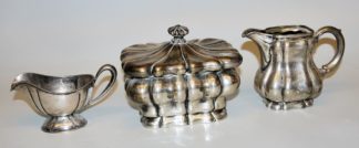 0803-Silberne Zuckerdose, Sahnegießer und Sauciere um 1900/20