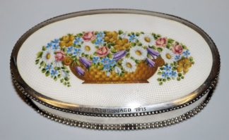 0807-Georg Adam Scheid, Silberdose mit weißem Guilloché-Email und Blumenkorb, Wien vor 1913