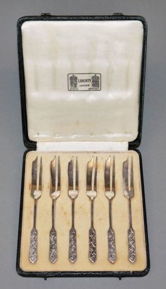 0815-Satz silberne Kuchengabeln von Liberty, Birmingham 1935