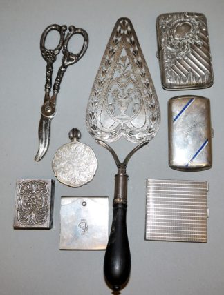 0818-Sammlung Kleinsilber: Zigarettenetuis, Visitenkartenetui, Parfumflakon usw.