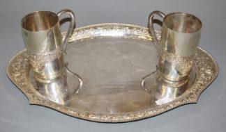 0823-Tablett und paar Humpen, Silber