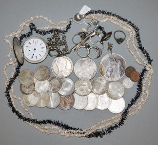 0826-Sammlung Silbermünzen, Silbertaschenuhr des Jugendstils u. Silberschmuck